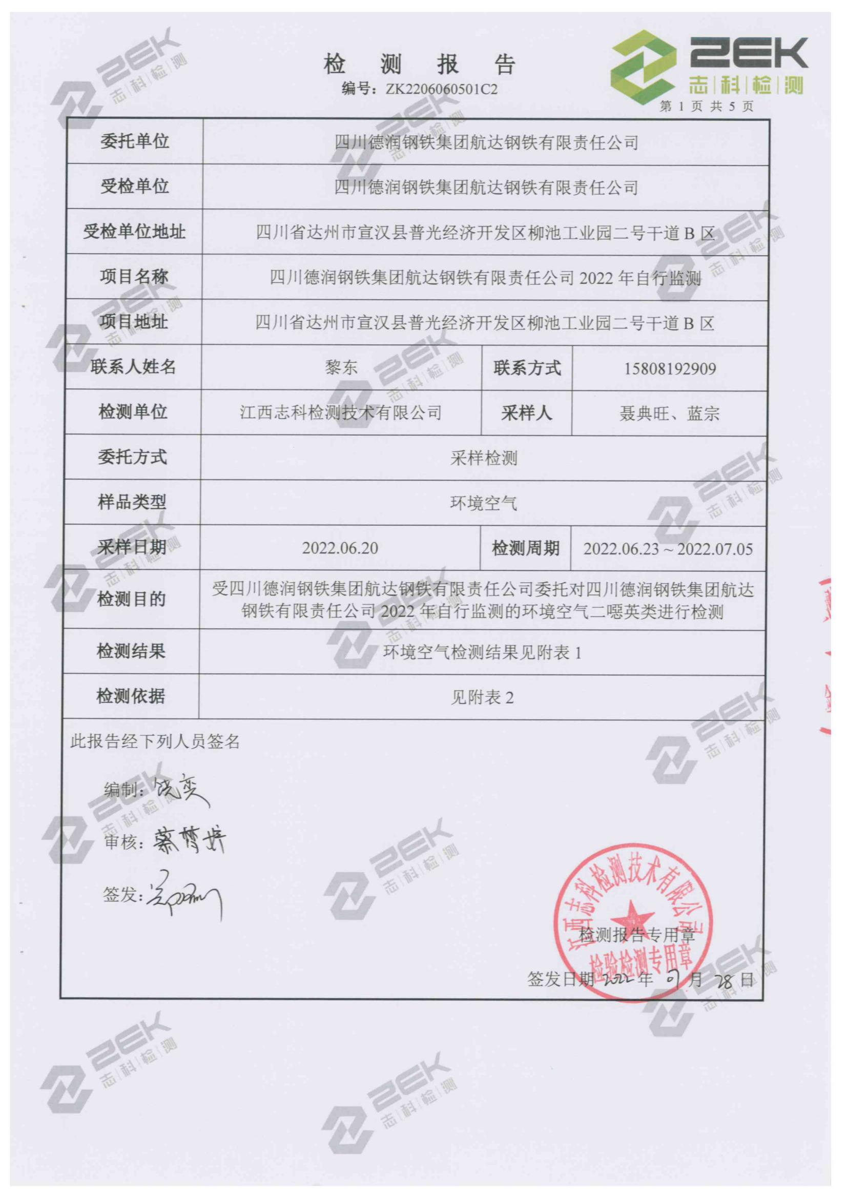 首頁 > 新聞資訊 > 集團要聞 > 航達鋼鐵2022年環境空氣自行檢測信息公開
