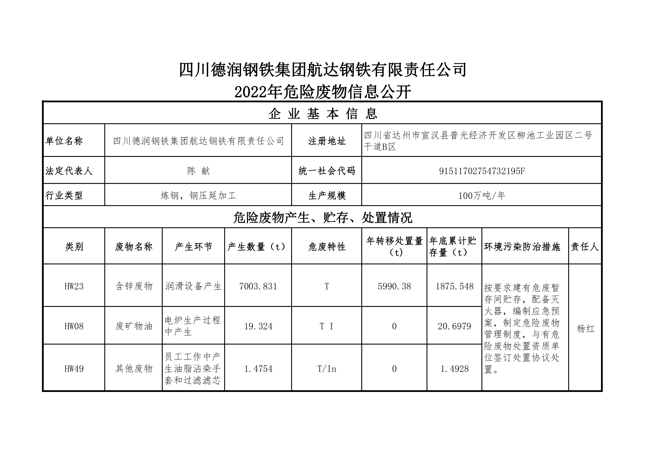 首頁 > 新聞資訊 > 集團要聞 > 航達鋼鐵2022年危險廢物信息公示