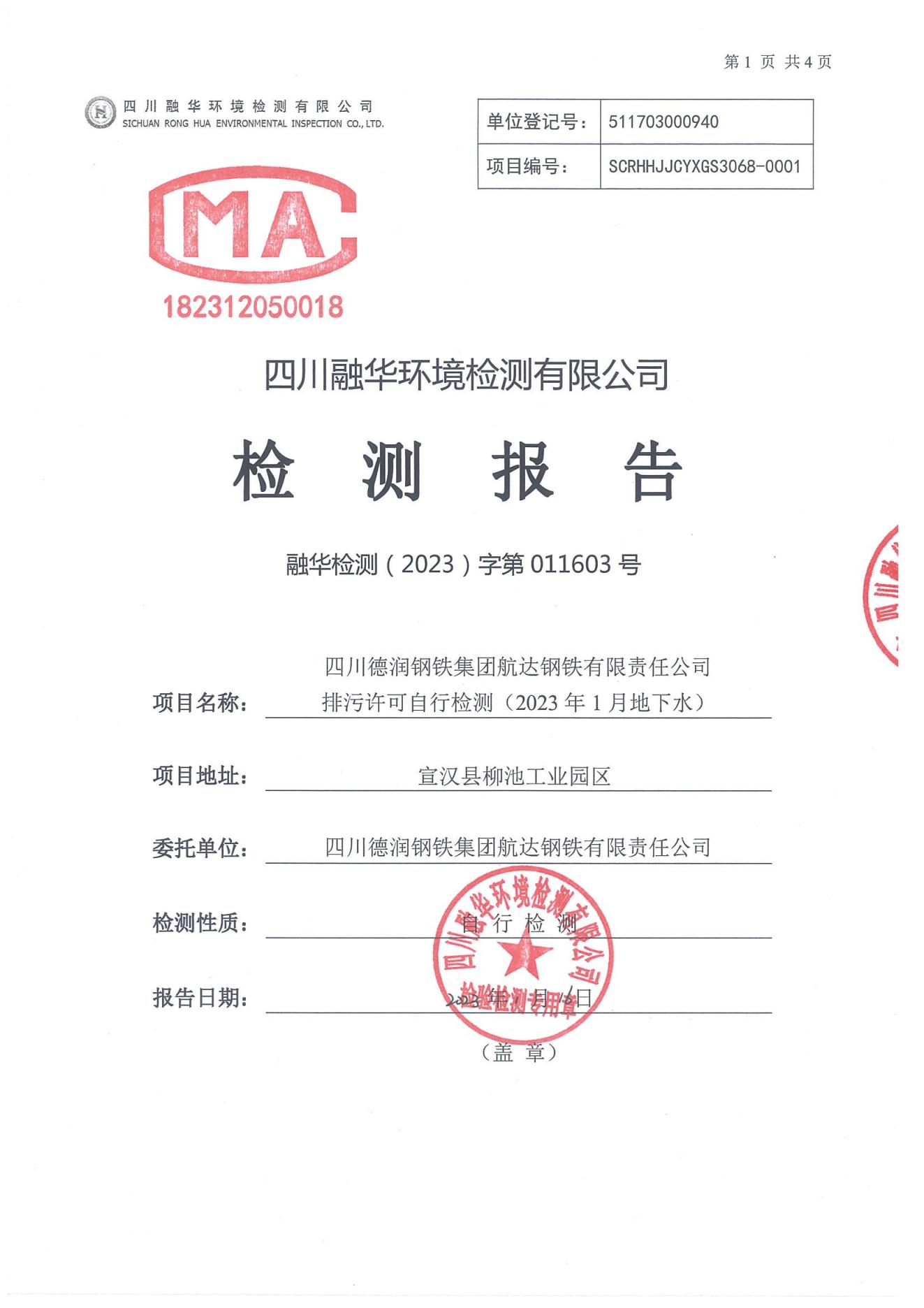 航達鋼鐵2023年1月地下水檢測報告