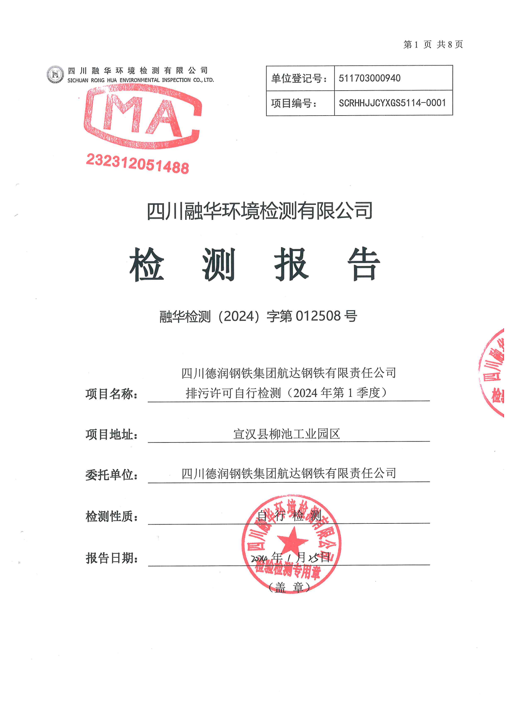 首頁 > 新聞資訊 > 集團要聞 > 航達鋼鐵2024年一季度自行檢測報告(1)
