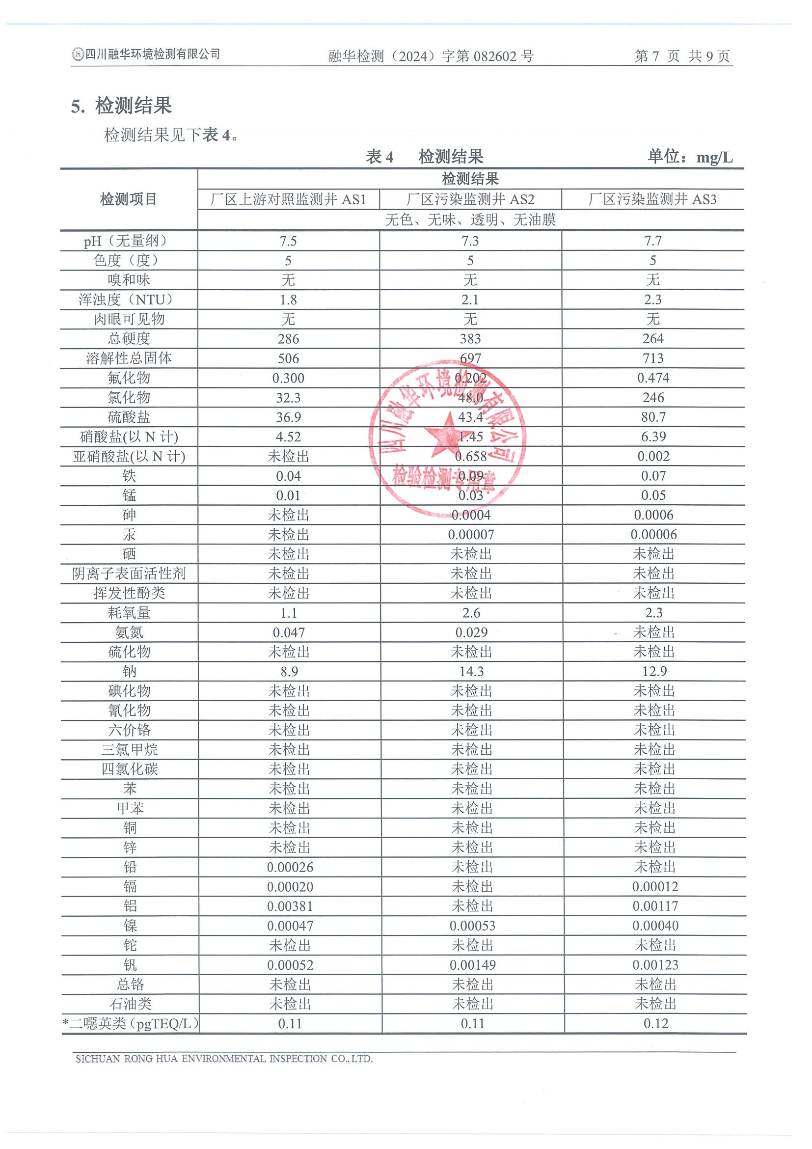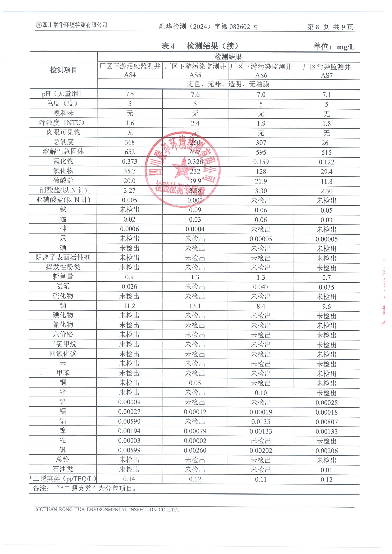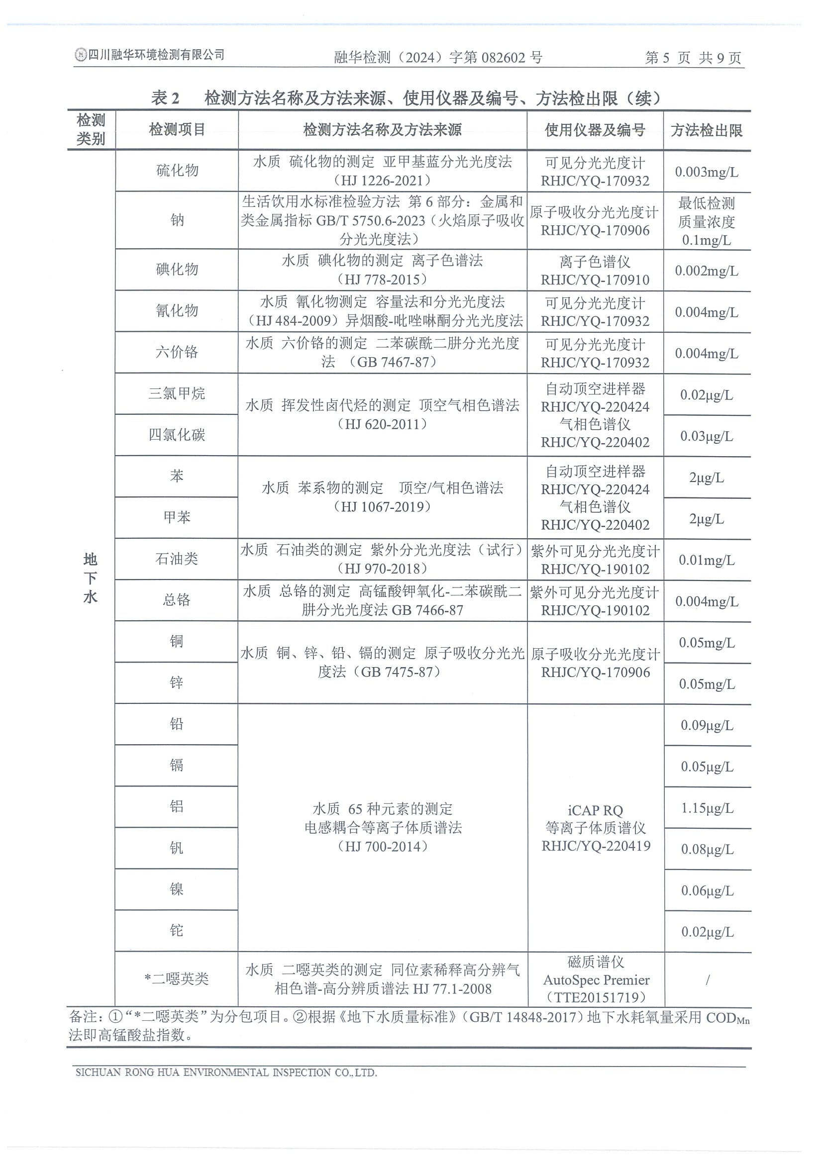 德潤航達鋼鐵2024年地下水自行檢測報告