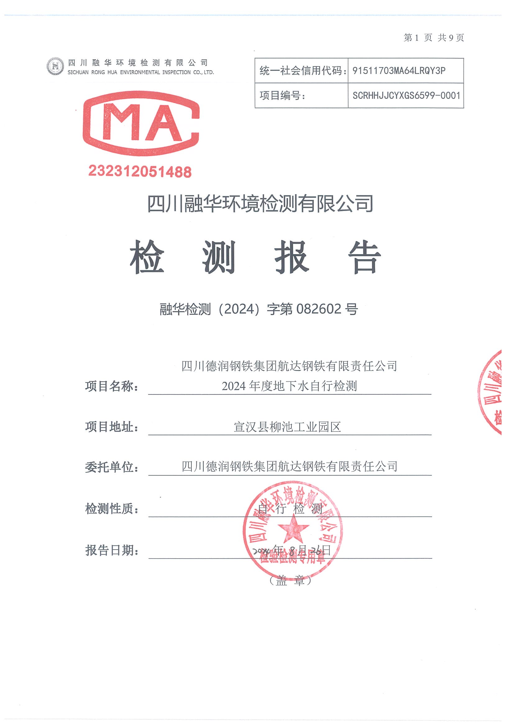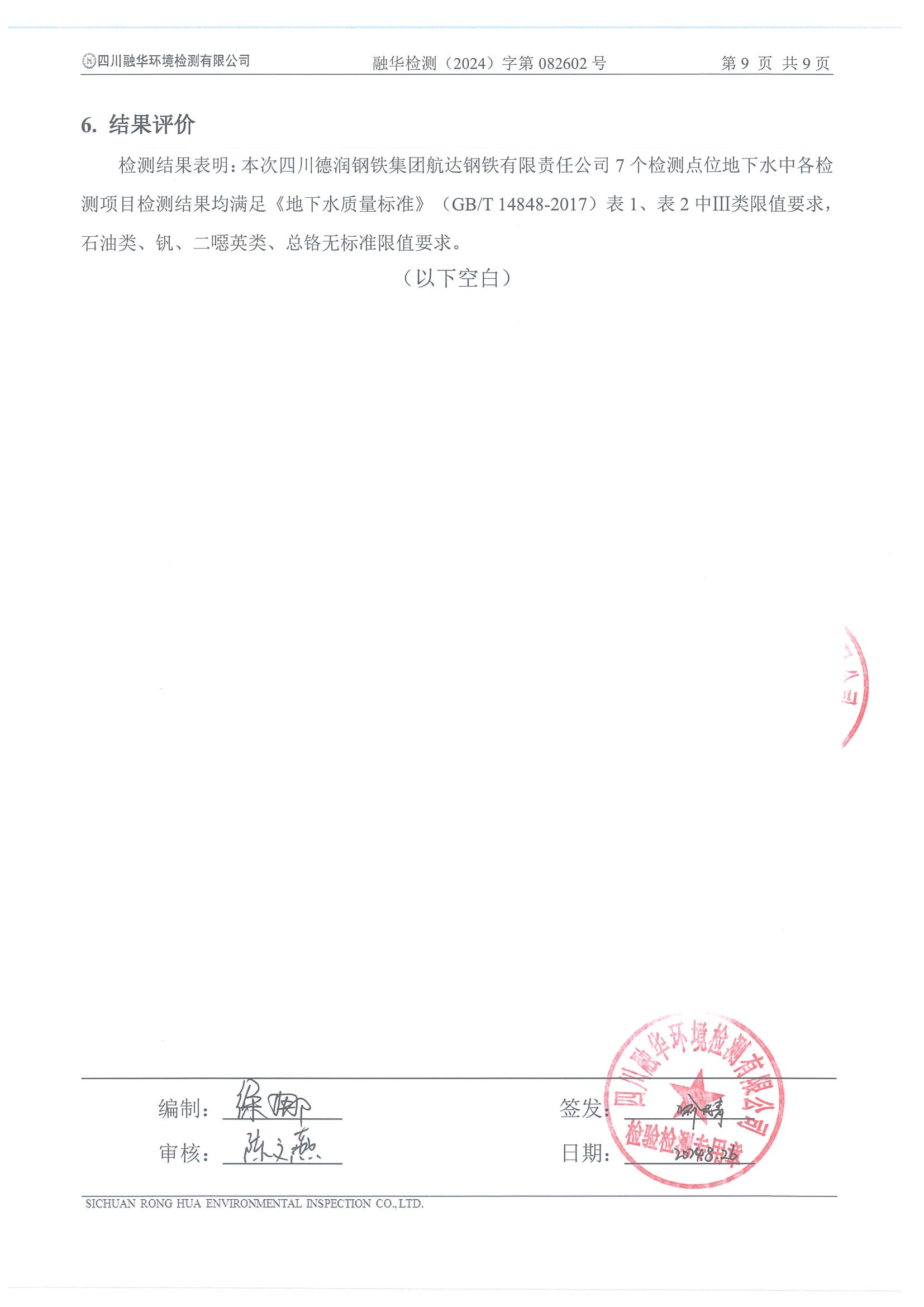 首頁 > 新聞資訊 > 集團要聞 > 德潤航達鋼鐵2024年地下水自行檢測報告