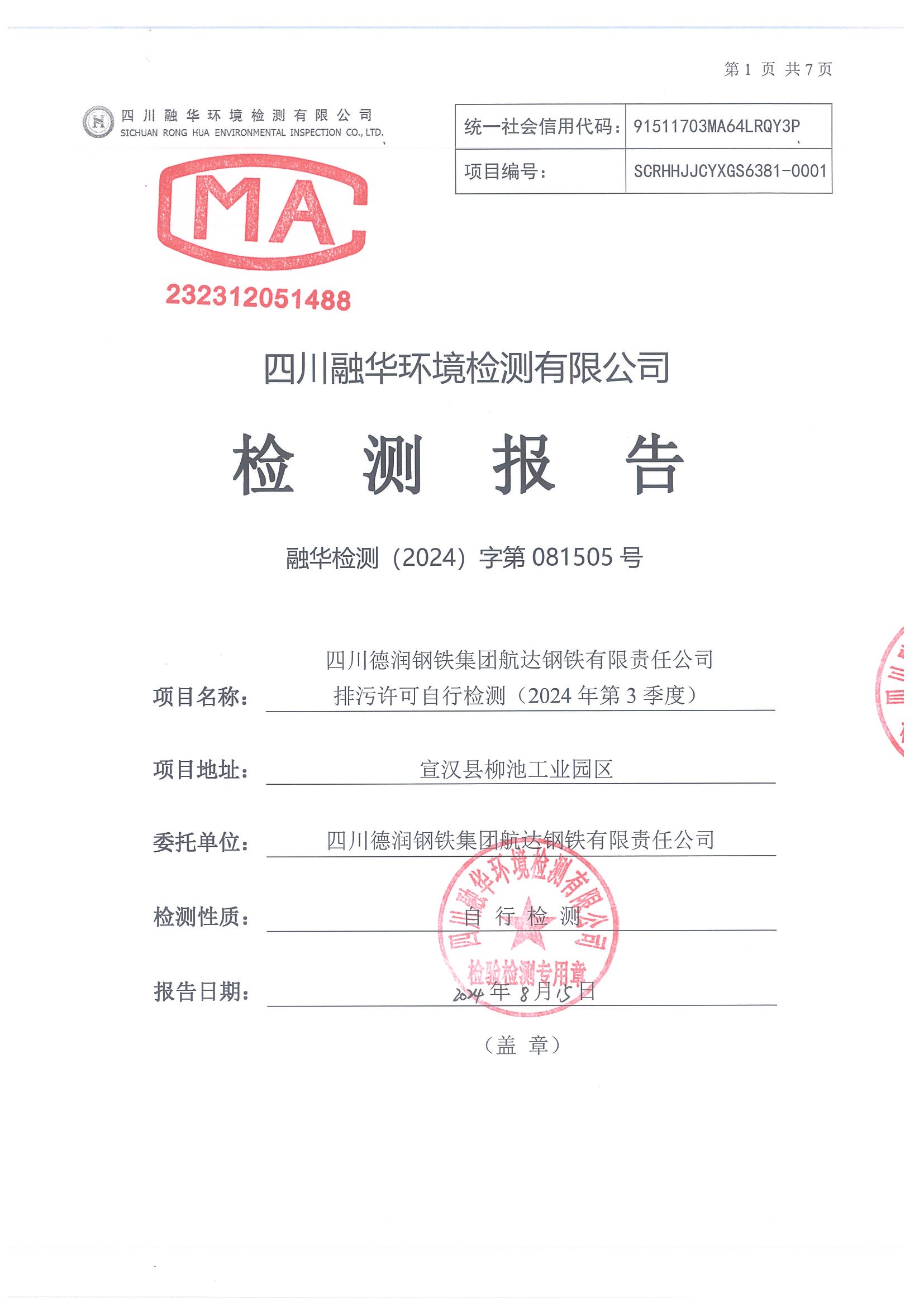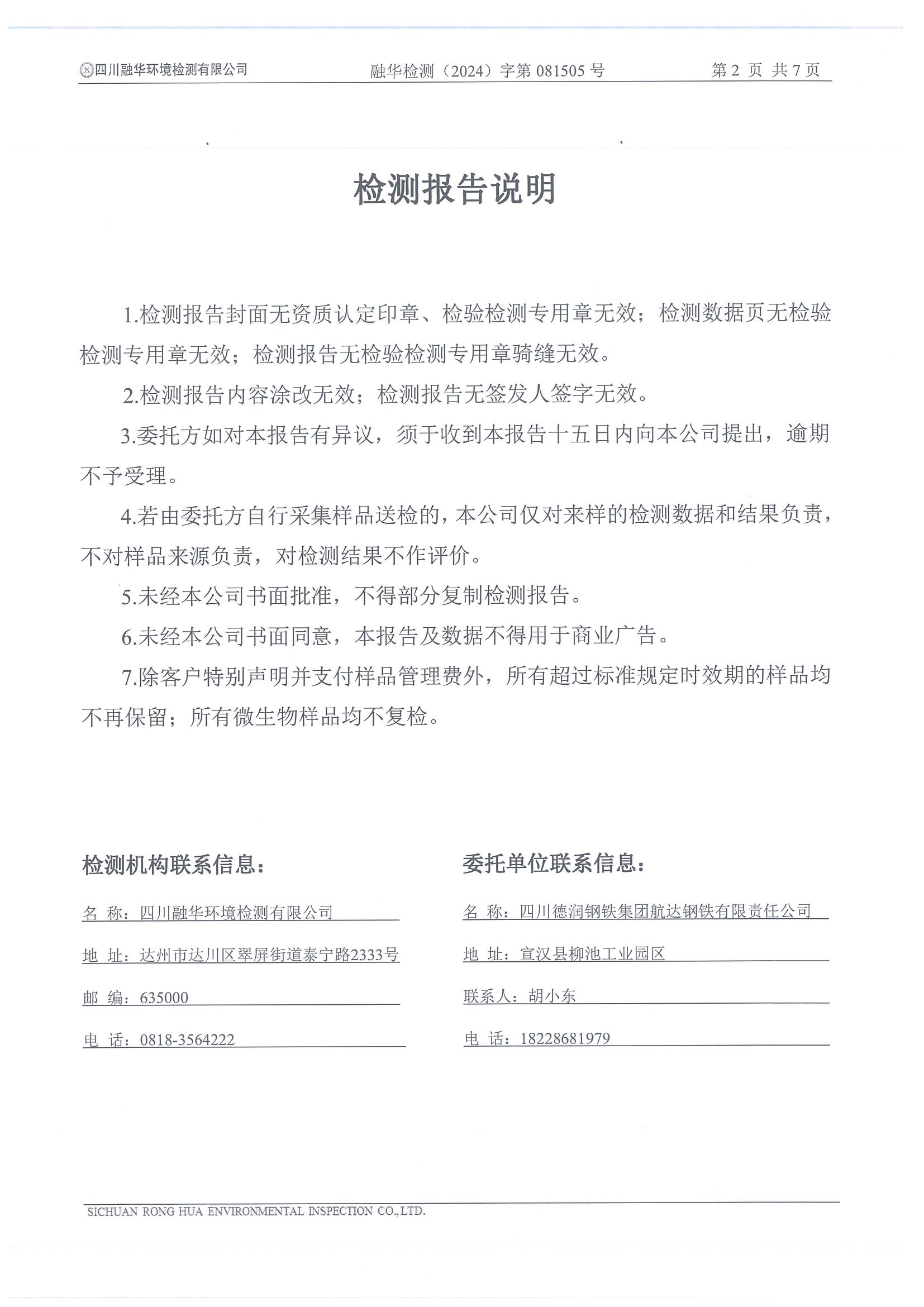 德潤航達鋼鐵2024年3季度自行檢測報告